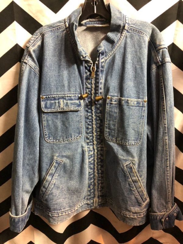 DENIM JACKET ZIP-UP STYLE W/ DRAWSTRING COLLAR