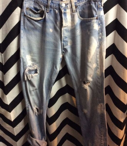 LEVIS DENIM JEANS – 501 – SELVAGE FABRIC – BLEACHED & RIPPED