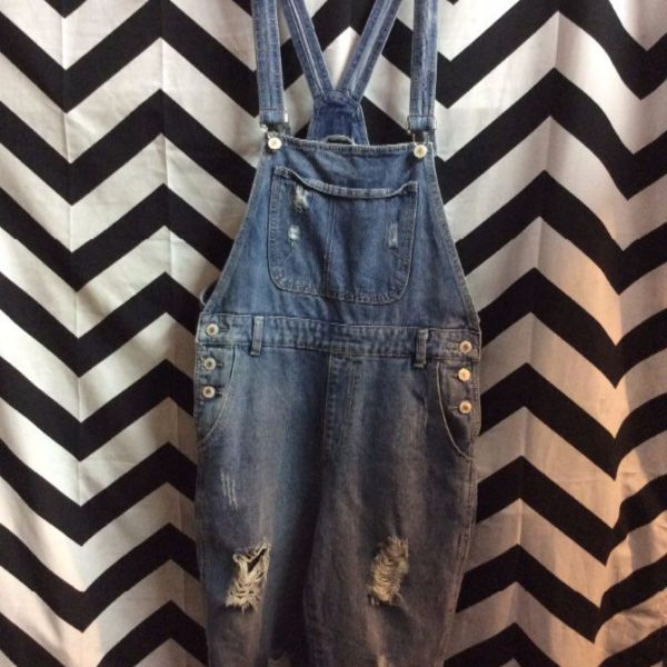 *AS-IS* RAD!! DISTRESSED & FADED CUTOFF LIBERTY CUTOFF SHORT DENIM OVERALLS