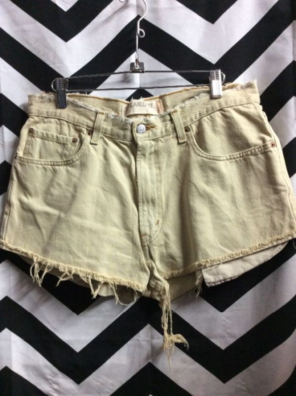 Levis denim shorts, cut-off, 550, red tab, relaxed fit, tan, size 34″W