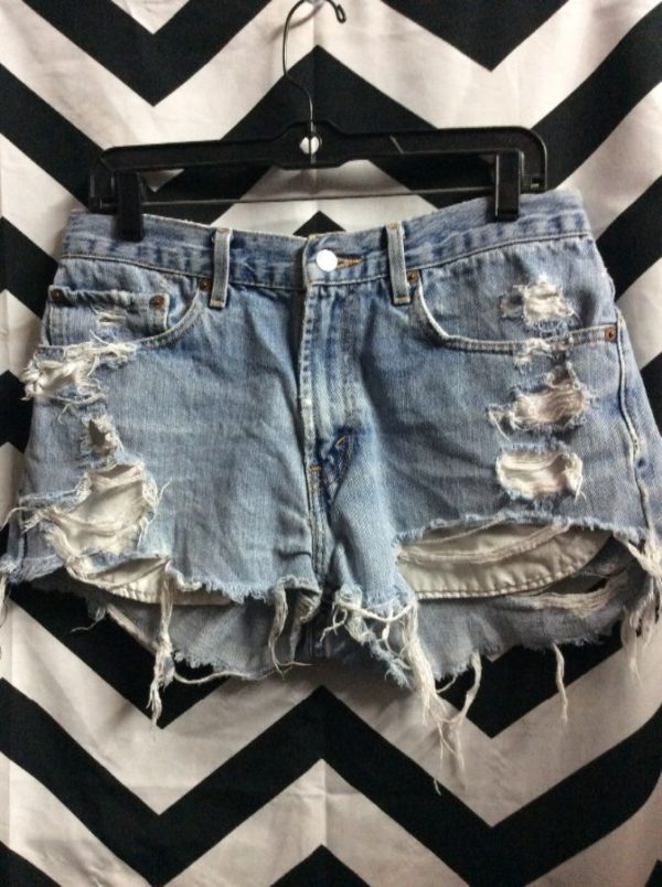 LEVIS DENIM SHORTS CUT-OFF NATURAL RIPS & FRAYS 505