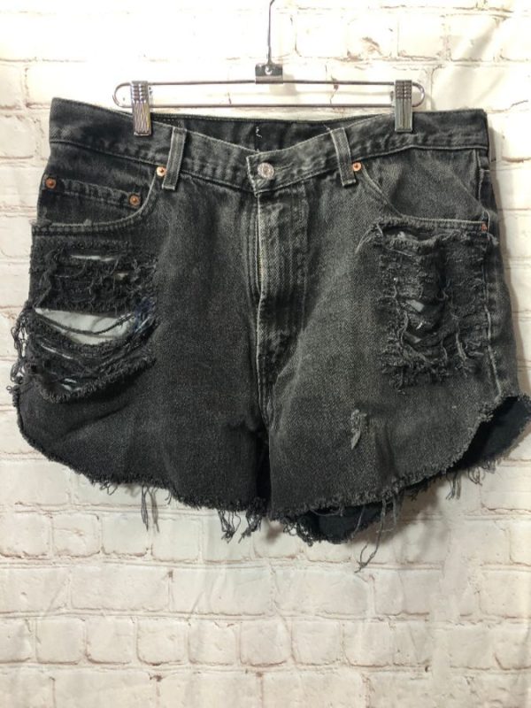 Levis denim shorts, cut-off, distressed, acid washed, black, sized 34W