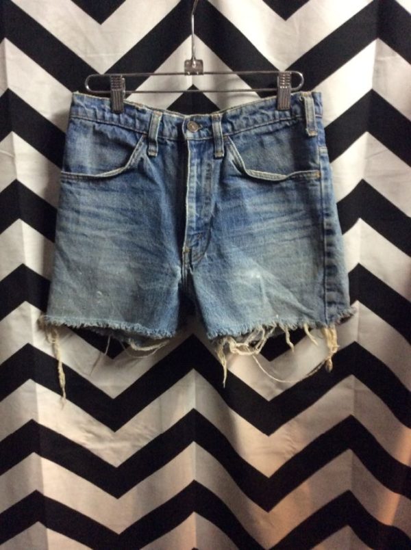 80S HIGH WAISTED CUT OFF DENIM SHORTS BUTTON UP CROTCH