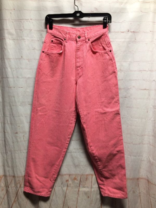 Newport News denim pants, zip-up fly, high waist, tapered legs, bright solid color, pink, size 6