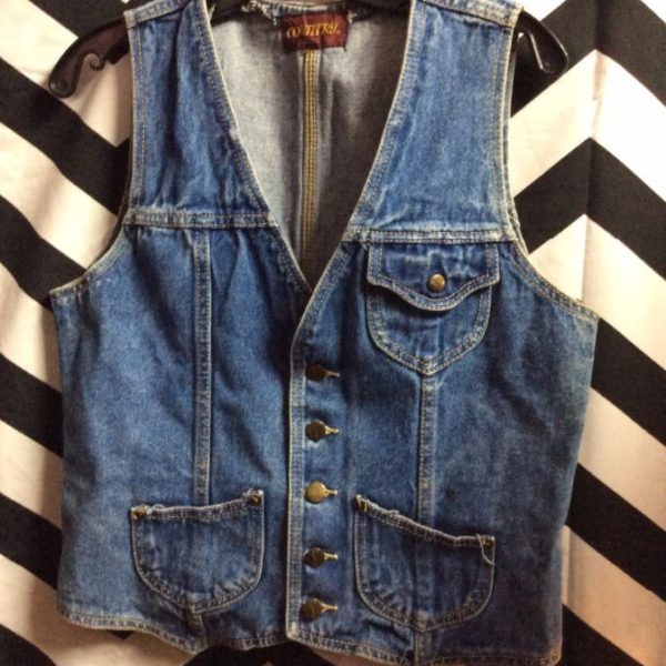 Classic denim vest, button-up, 3 front pockets, acid washed, medium blue, size M