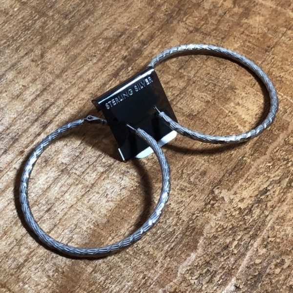 Earrings, hoops, diamond cut with textured design, 925 silver metal, silver