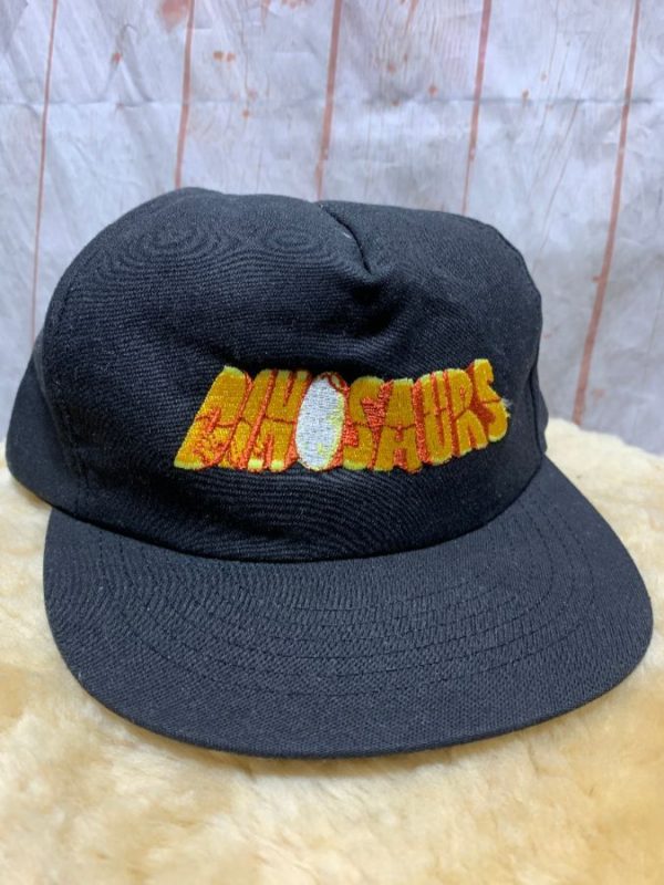 1990’s baseball cap, Dinosaurs TV show, front embroidered design, snap-back, black/white/yellow/orange, size adj