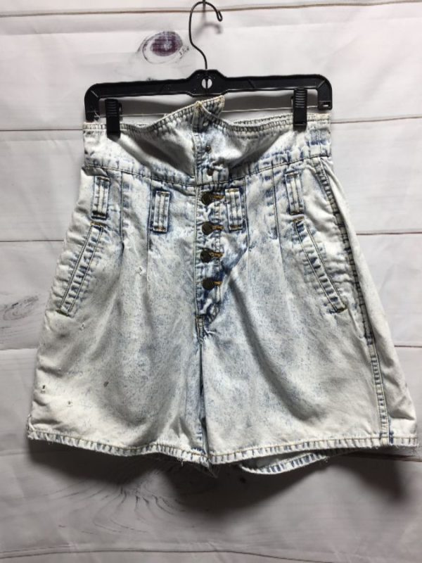 Limited Express denim shorts, paper bag style, button-up, high waist, acid washed, distressed, pale blue As is