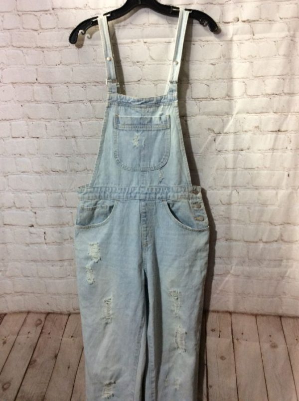 DISTRESSED DENIM OVERALLS