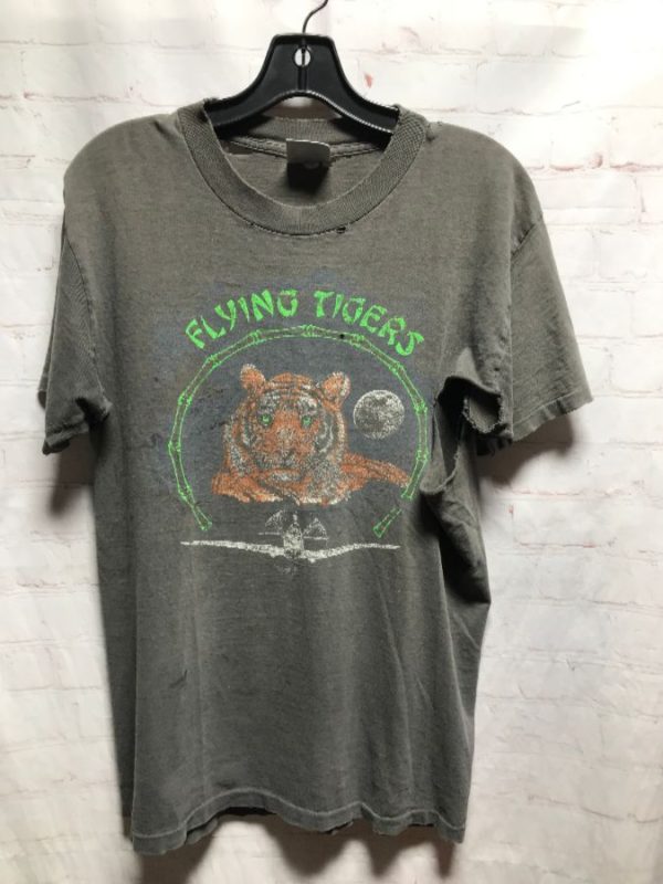 DISTRESSED FLYING TIGERS T-SHIRT W/ FRONT TIGER GRAPHIC