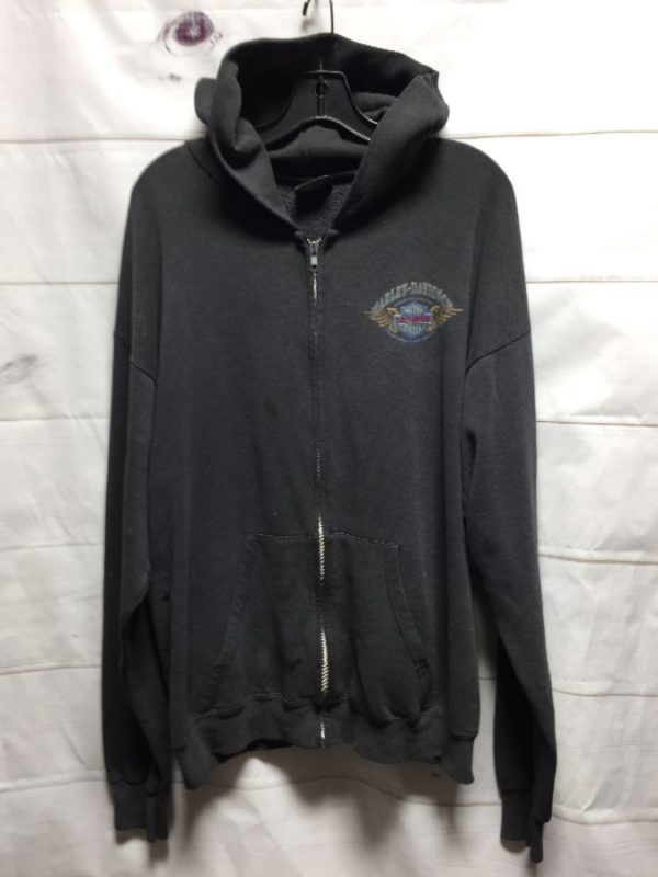 DISTRESSED HARLEY DAVIDSON MILWAUKEE, WISCONSIN HOODED ZIP UP SWEATSHIRT – AS IS