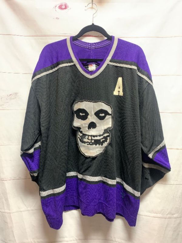DISTRESSED LA KINGS NHL HOCKEY JERSEY W/ LARGE MISFITS SKULL PATCH WYMAN #4 AS-IS