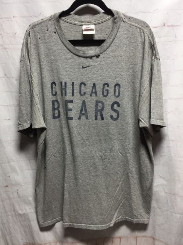 Nike T-shirt, Chicago Bears, screen printed team name and swoop logo, distressed, medium gray/dark gray, size XL