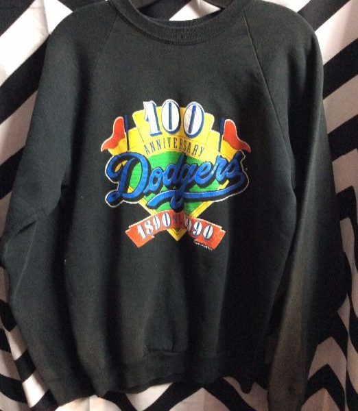 1890-1990 Dodgers 100 Year Anniversary pullover sweatshirt, screen printed front design, black/multi-color, size XL