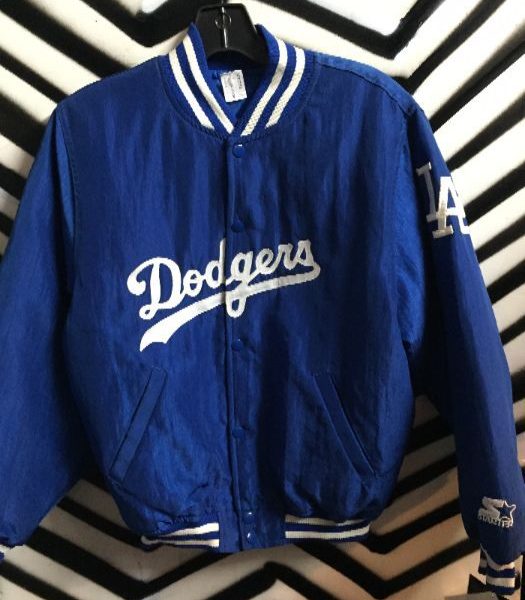 Dodgers Starter baseball jacket, button-up, appliques and patches, blue/white, size S