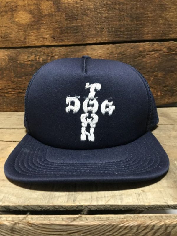 OTTO CAP TRUCKER HAT, MESH BACK, DOG TOWN SKATEBOARDS, HAND PRINTED FRONT LETTERING, SNAP BACK, BLUE/WHITE, SIZE ADJUSTABLE