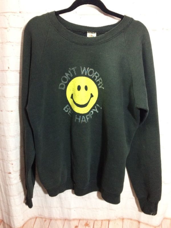 VINTAGE 1990S DONT WORRY BE HAPPY PULLOVER CREWNECK SWEATSHIRT JUMPER