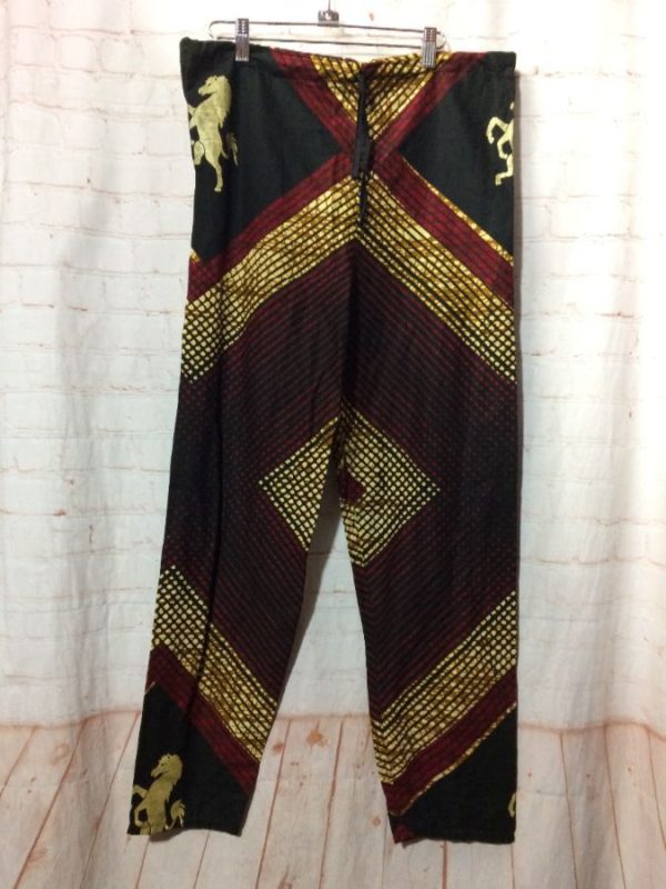 COTTON PANTS W/ DRAWSTRING WAIST & ETHNIC HORSE PATTERN