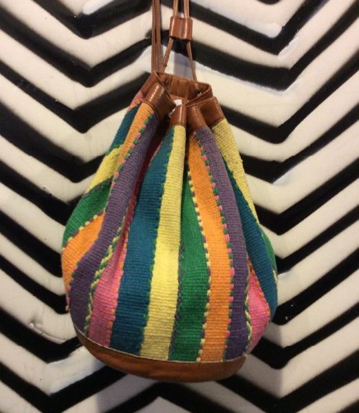 Bucket Bag, leather drawstring & woven textile, pastel, as – is
