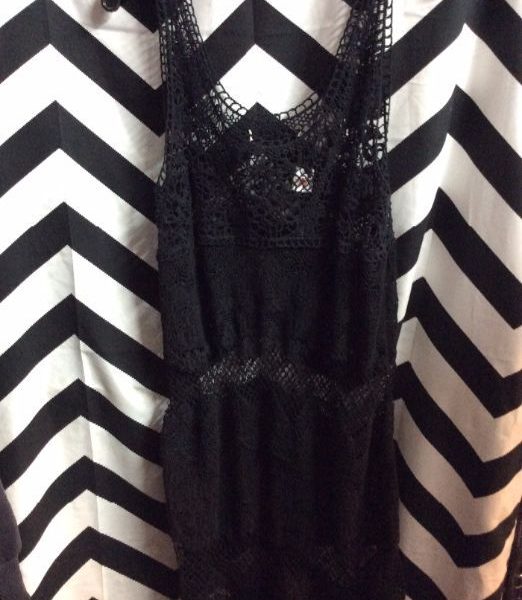 DRESS – MINI – SLEEVELESS – SHEER LACE – SEE THRU MIDRIFF