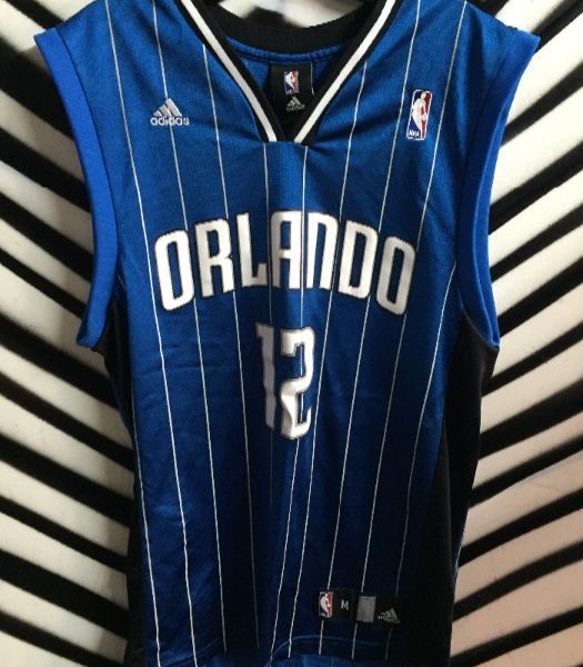 Basketball jersey, Orlando Magic Dwight Howard #12, blue shirt with white pinstripes and lettering, size M