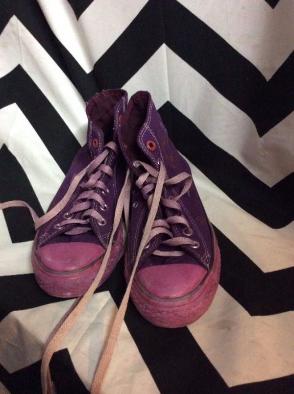 Converse sneakers, high tops, lace-up, project red, purple, women’s size 7.5