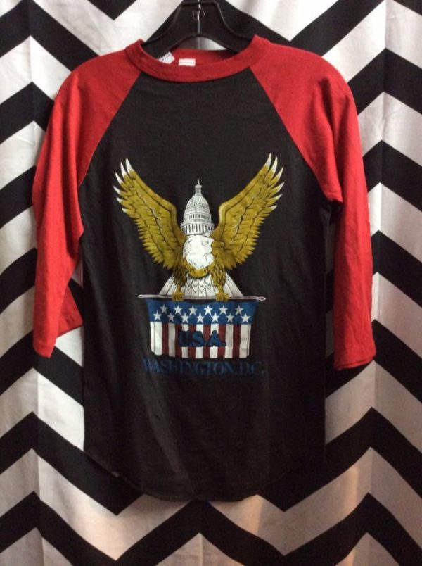 BASEBALL TEE T-SHIRT W/SCREEN PRINTED WASHINGTON DC EAGLE DESIGN