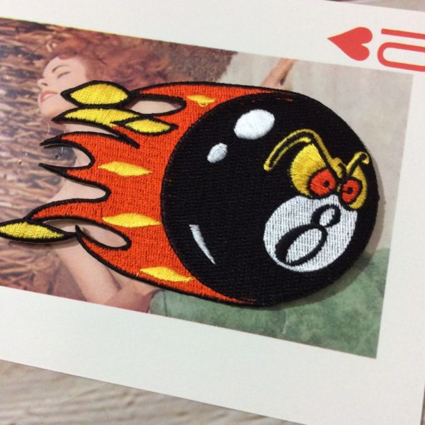 BW PATCH – EIGHT BALL BULGING EYES WITH FLAME PATCH 1990S