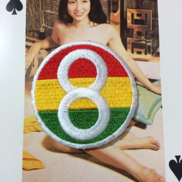 EIGHT BALL EMBROIDERED PATCH W/ RASTA COLORS