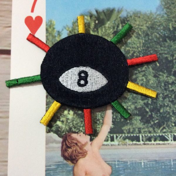 EIGHT BALL FUNKY EYE EMBROIDERED PATCH W/ RASTA COLORS 90’S