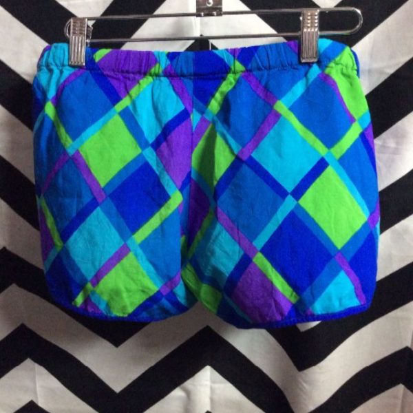 SWIM SHORTS – ELASTIC WAIST – DIAMOND PRINT – NEON COLORS