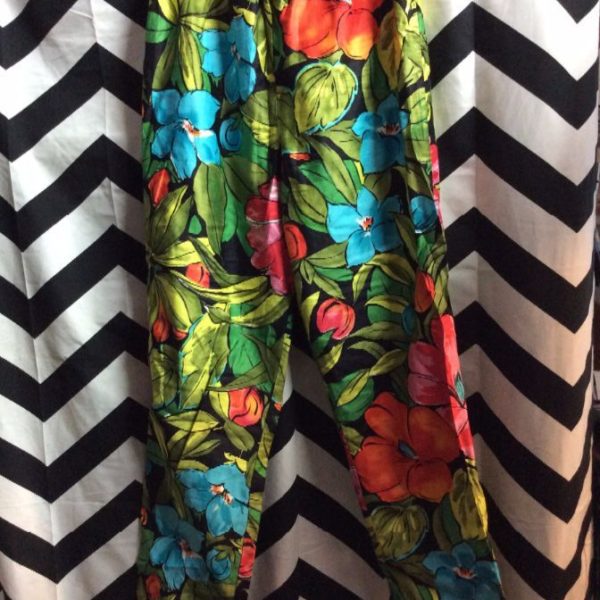 BEACH PANTS – ELASTIC WAIST – BRIGHT COLORS – TROPICAL FLORAL PRINT
