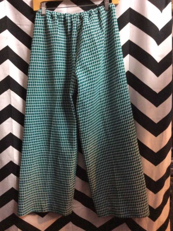 PANTS, ELASTIC WAIST, SQUARE MESH PATTERN, GREEN/WHITE, SIZE ONE SIZE FITS ALL