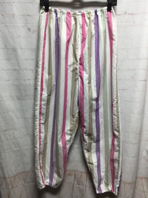 ELASTIC WAIST W/ MULTI-COLORED VERTICAL STRIPED PRINT PAJAMA PANT