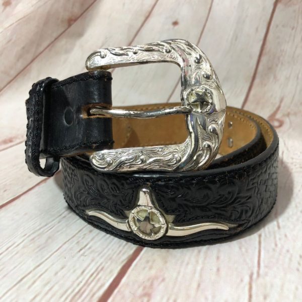 EMBOSSED LEATHER BELT W/ CHROME LONG HORN STAR