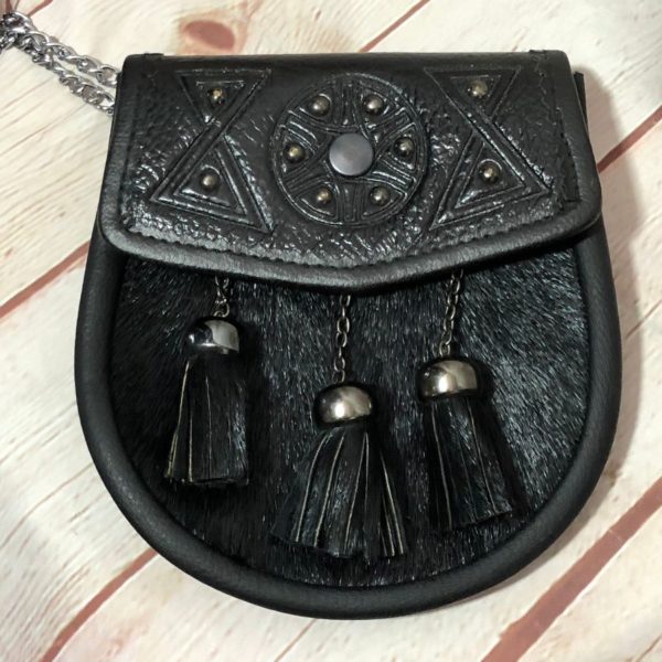 EMBOSSED LEATHER & COW HIDE W/ TASSLES MOTORCYCLE BELT BAG