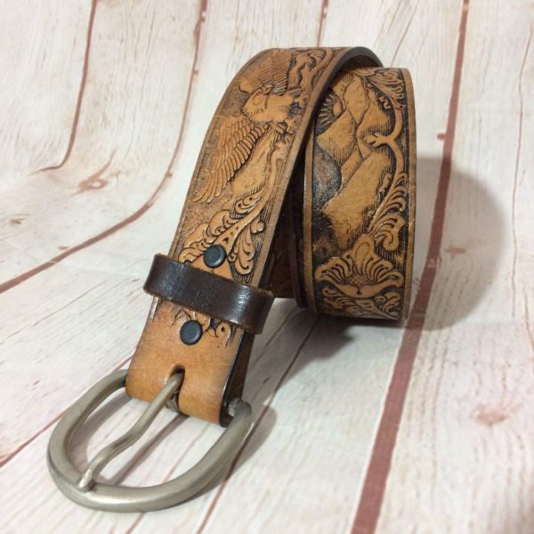 EMBOSSED W/ EAGLE & FLOWER DESIGN LEATHER BELT