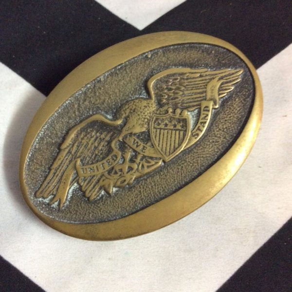 BELT BUCKLE – BRASS – USA – EMBOSSED EAGLE – UNITED WE STAND