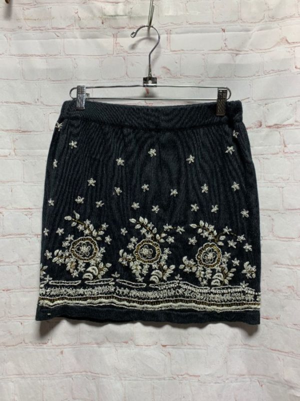 EMBROIDERED & BEAD EMBELLISHED MINI SKIRT W/ ELASTIC WAIST