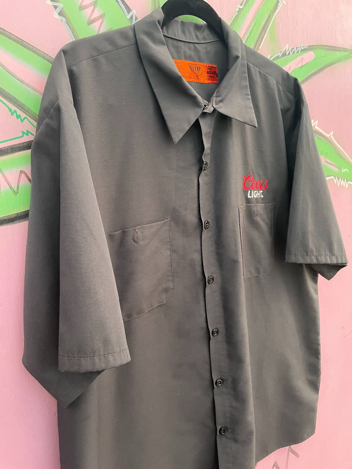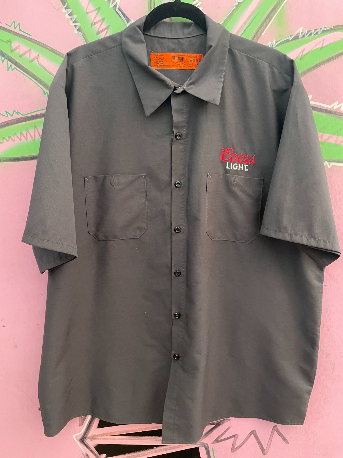 EMBROIDERED COORS LIGHT MECHANICS STYLE SHORT SLEEVE BUTTON DOWN WORK SHIRT