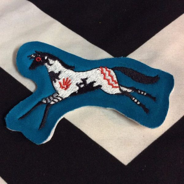 Embroidered patch, Native American, War Horse, teal/white/black/red