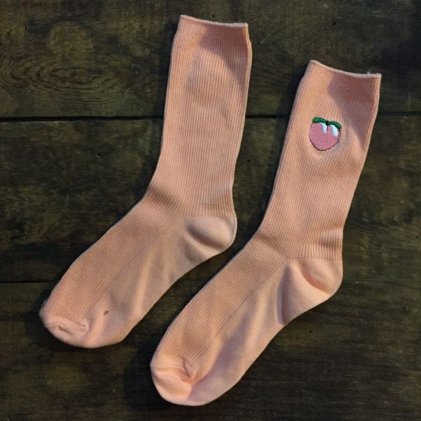 EMBROIDERED PEACH PICTORIAL RIBBED SOCKS MID CALF