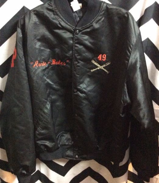 HITMEN #49 SATIN BASEBALL JACKET W/EMBROIDERED BACK DESIGN