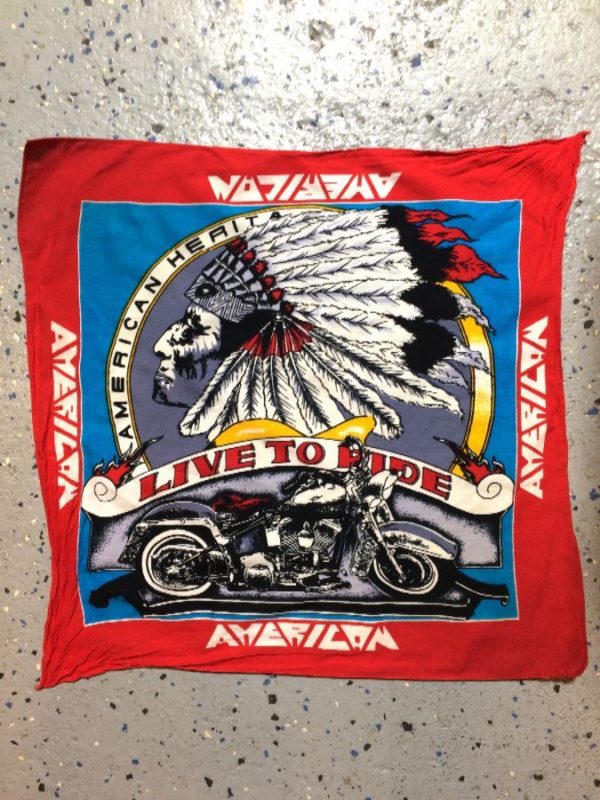 Bandana, square shape, epic American Heritage, Live To Ride, chief profile with headdress and motorcycle, red/white/blue/yellow/black, size one size