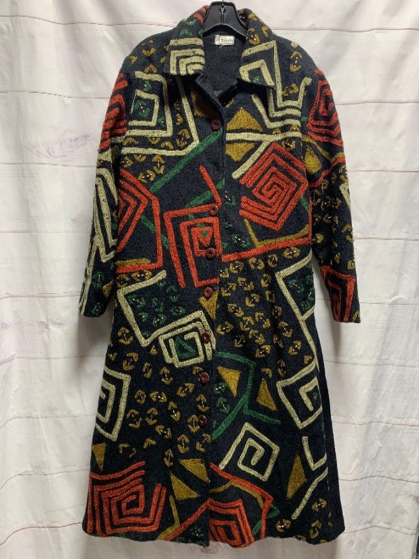 ETHNIC EMBROIDERED DESIGN WOOL DUSTER JACKET