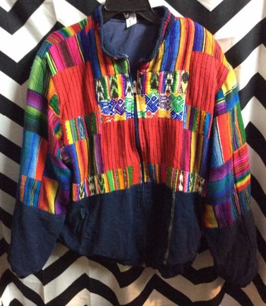 CHAIN STITCHED EMBROIDERED SUN AND STAR SILK COLOR BLOCK JACKET – AS IS