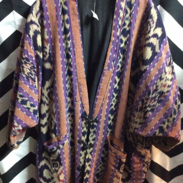 COCOON JACKET – BUTTON-UP BOTTOM W/COIN BUTTONS – ETHNIC PRINT – WOVEN IKAT FABRIC