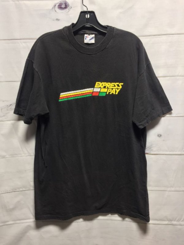 Hanes T-shirt, cotton, Express Pay, screen printed front design, black/yellow/red/green/white, size XL As is