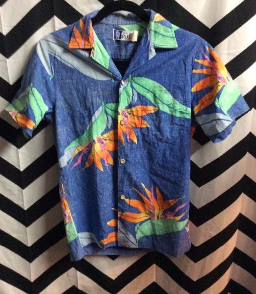 HAWAIIAN SHIRT – BIRD OF PARADISE DESIGN – FADED