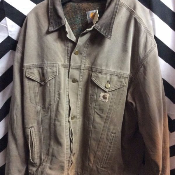 CARHARTT JACKET – BUTTON-UP – CORDUROY COLLAR – INNER LINING – FADED